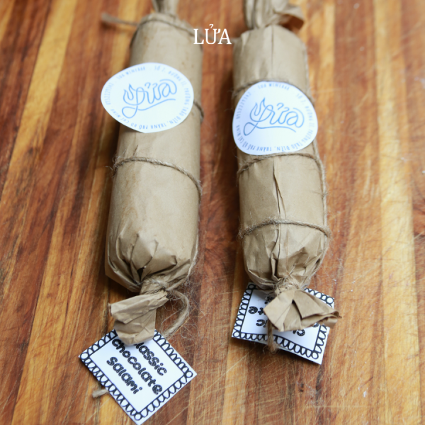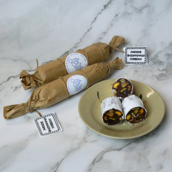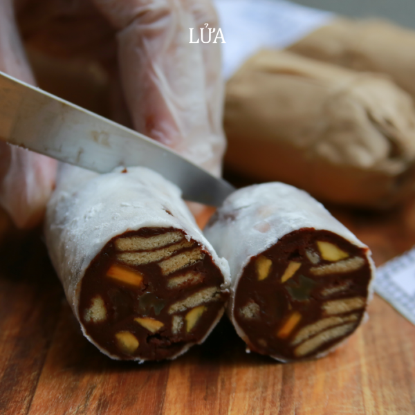 Món tráng miệng được làm từ sô-cô-la đen, hạt rang thơm, bánh quy giòn và trái cây sấy khô. Trông giống xúc xích salami, nhưng hương vị thì hoàn toàn ngọt ngào: béo bùi, dai nhẹ và đậm đà hương cacao.